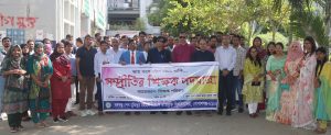আজ বুধবার (২০ নভেম্বর) দুপুরে বিশ্ববিদ্যালয়ের প্রশাসনিক ভবনের সামনে থেকে পদযাত্রাটি শুরু হয়ে ক্যাম্পাসের বিভিন্ন সড়ক প্রদক্ষিণ শেষে একই স্থানে মিলিত হয়। পরে সৌহার্দের সমাবেশে শিক্ষকরা নিজেদের ঐক্য বজায় রাখতে ফুলেল শুভেচ্ছা বিনিময় করে একে অপরকে মিষ্টি মুখ করান।
