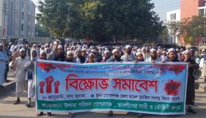 বিক্ষোভ সমাবেশ শেষে ওই স্থান থেকে একটি বিক্ষোভ মিছিল বের করা হয়। মিছিলটি জেলা শহরের বিভিন্ন সড়ক প্রদক্ষিণ করে জেলা প্রশাসকের কায্যালয়ের সমানে গিয়ে মোনাজাতের মধ্য দিয়ে শেষ করে।