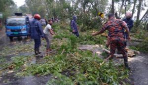 আজ সোমবার (২৮ এপ্রিল) বেলা সাড়ে ৪টার দিকে ঢাকা- খুলনা মহাসড়কের মুকসুদপুর উপজেলার দাসের হাট এলাকায় প্রায় দুই কিলোমিটার এলাকায় জুড়ে মহাসড়কের পাশের বিভিন্ন ধরনের গাছপালা ভেঙ্গে রাস্তায় উপরে পড়ে। এতে প্রতিবন্ধকতা সৃষ্টি হয়।মহাসড়কের দুইপাশে আটকা পড়ে অসংখ্য যানবাহন।পরে মুকসুদপুর উপজেলা ফায়ার সার্ভিসের কর্মিরা গাছ কেটে প্রতিবন্ধকতা দুর করলে প্রায় ১ঘন্টা পর মহাসড়কে যানবাহন চলাচল স্বাভাবিক হয়।
