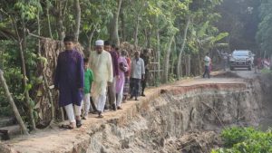 এর আগে গত বুধবার (৩০ এপ্রিল) দুপুরে গ্রামীন এই সড়কটি পানির তোরে ভেঙে যায়। তারপর থেকে ১০টি গ্রামের হাজার হাজার মানুষ দুর্ভোগে পড়েছেন।১০ থেকে ১৫ কিলোমিটর ঘুরে তাদের চলাফেরা করতে হচ্ছে।