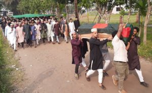 পরে সেখান থেকে ভারতের আগ্রাসন বিরোধী কফিন মিছিল বের করা হয়। মিছিলটি ক্যাম্পাসের বিভিন্ন সড়ক প্রদক্ষিণ করে প্রশাসনিক ভবনের সামনে গিয়ে শেষ হয়। সেখান শহীদ শরিফ ওসমান হাদির রূহের মাগফিরাত কামনা করে দোয়া করা হয়।