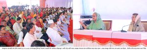 শেখ হাসিনা আরো বলেন, আমার আরেকটি বিষয় কোন মানুষ ভূমিহীন ও গৃহহীন থাকবে না। কাজেই যে সমস্ত পরিবারের ঘরবাড়ি নেই, জমি নাই আমরা তাদেরকে বিনা পয়সায় ঘর তৈরী করে দিচ্ছি। সারা বাংলাদেশেই আমরা এটা করে যাচ্ছি। আমাদের অল্প কিছু বাকী আছে, তাহলেই আমরা সারা বাংলাদেশটাকে ভূমিহীন, গৃহহীন মুক্ত বলতে পারবো। সবার একটা ঠিকানা হবে। একটা বাসস্থান হলে তার একটি কর্মসংস্থানের ব্যবস্থা হয়। সেটা এখন আমরা করে দিচ্ছি এবং যাতে দেশটা এগিয়ে যায়। এর সুফল এখন মানুষ পাচ্ছে।