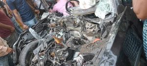 মুকসুদপুরে বাস চাপায় প্রাণ গেল প্রাইভেটকার যাত্রীর, আহত ২