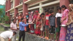 ঘূর্ণিঝড় রিমালের প্রভাবে গোপালগঞ্জের টুঙ্গিপাড়ায় অস্বাভাবিক জোয়ার ও বৃষ্টিপাতের কারনে ৪০০ ঘর প্লাবিত ও সহস্রাধিক মাছের ঘের ভেসে গেছে। উপজেলা প্রশাসন ক্ষতিগ্রস্থ পরিবারের মাঝে শুকনা ও রান্না করা খাবার বিতরন করেছে। রবিবার (২৬ মে) বিকেল থেকেই জেলার সর্বত্র বৃষ্টি আর সেই সাথে ঝড়ো হাওয়া বয়ে যায়।তা অব্যাহত থাকে সোমবার (২৭মে) সারারাত। এই দুর্যোগপূর্ণ আবহাওয়া উপেক্ষা করে টুঙ্গিপাড়া উপজেলা নির্বাহী অফিসার মোঃ মঈনুল হক ও প্রকল্প বাস্তবায়ন কর্মকর্তা মোঃ আরিফুল ইসলাম ক্ষতিগ্রস্থ পরিবারের মাঝে ত্রাণ সহায়তা ও বিধ্বস্ত ঘরবাড়ির মানুষদের আশ্রয় কেন্দ্রে নিয়ে আসেন।
